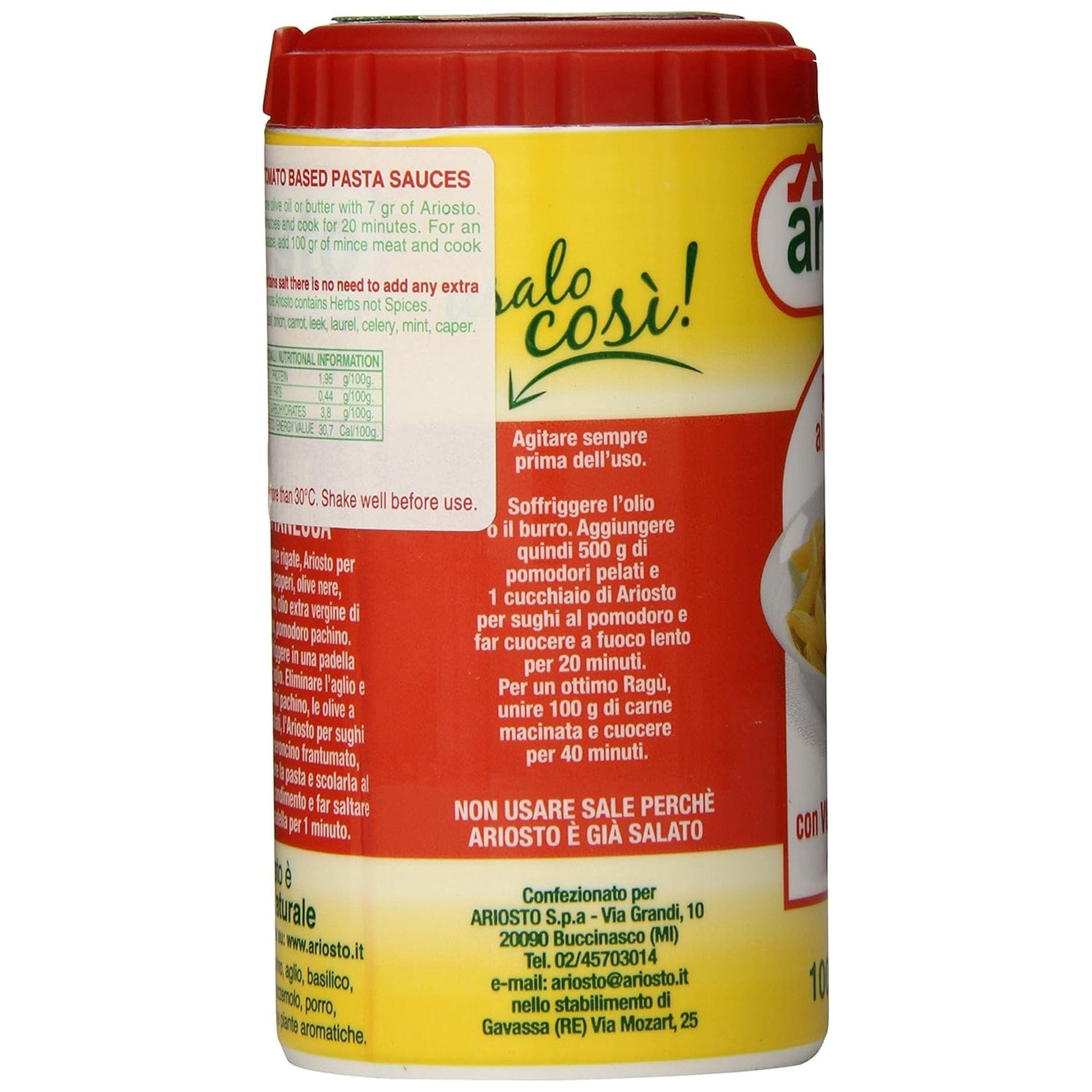 These special imported italian seasonings from Ariosto are made from fresh herbs and sea salt that are selected and mixed with skill and care. Ariosto seasonings have been the undisputed market leader in with over 40% of the italian seasoning market based on consumer response and desire, Ariosto has developed a range of seasoning specifically designed to be optimum for specific meat, fish and vegetable dishes. These seasonings have been packaged to serve both the consumer and food service sectors. Each of these special seasonings have been prepared from a combination of the following finest herbs: sage, juniper, bay leaves, oregano, garlic, thyme, sweet marjoram, basil, coriander, onion, celery, parsley and carrots. Without the addition of any non-natural ingredients (monosodium glutamate, preservatives), Ariosto Seasonings contain neither gluten nor traces of gluten. So they can also be used by coeliacs.