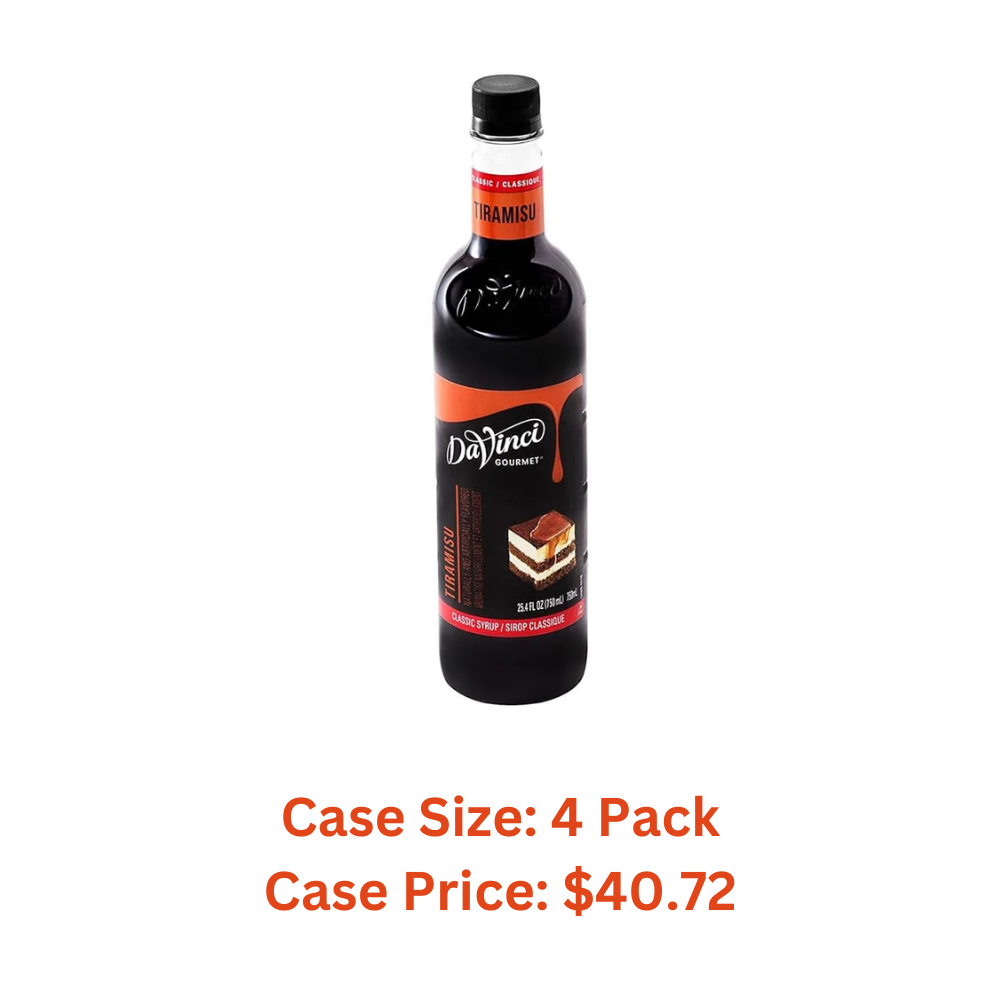 - Tiramisu Syrup: Inspired by the classic pastry with hints of yellow sponge cake and rich cream, and notes of chocolate and coffee liqueur, you'll love every drop of DaVinci Gourmet Classic Tiramisu Syrup.
