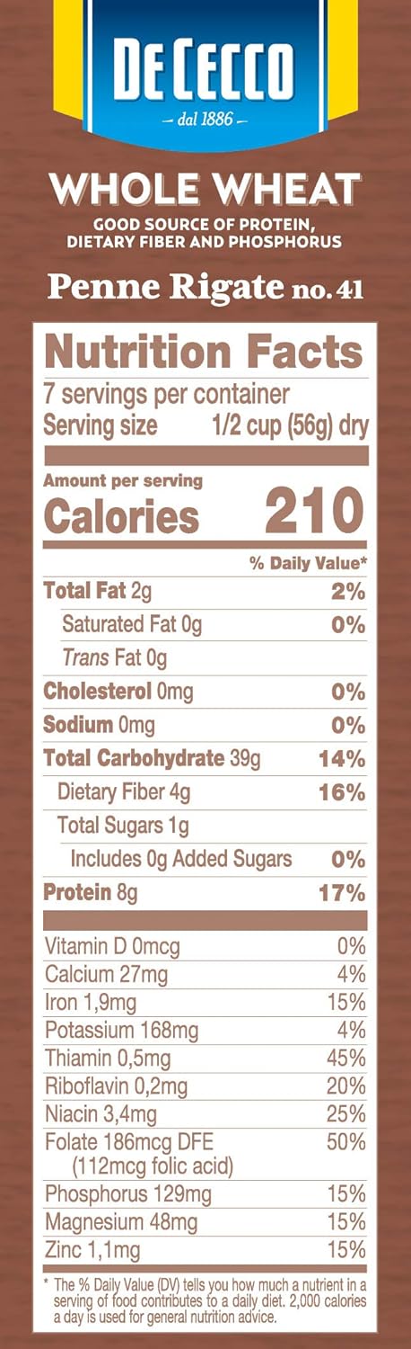 De Cecco Penne Rigate Whole Wheat, 13.25 oz Case 1