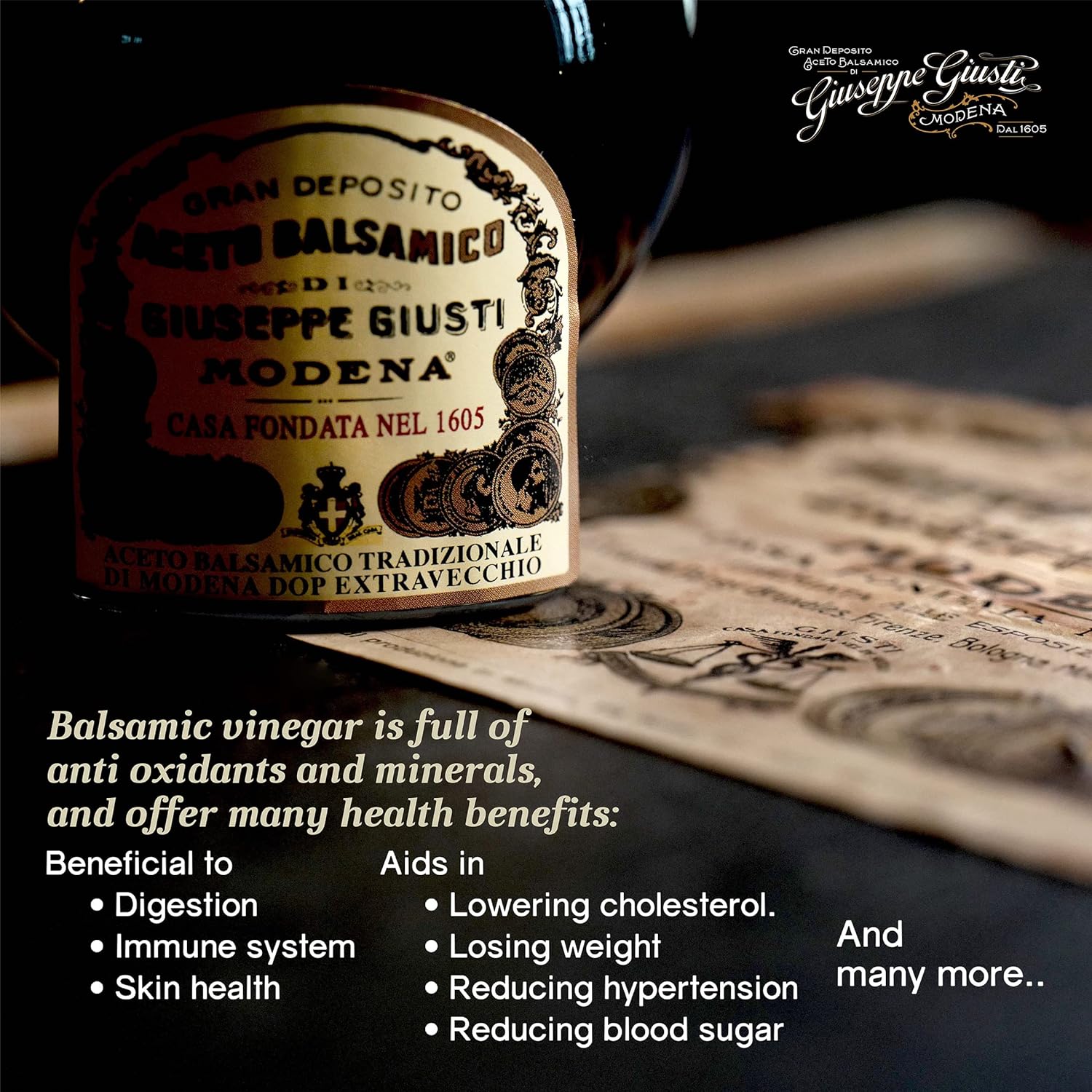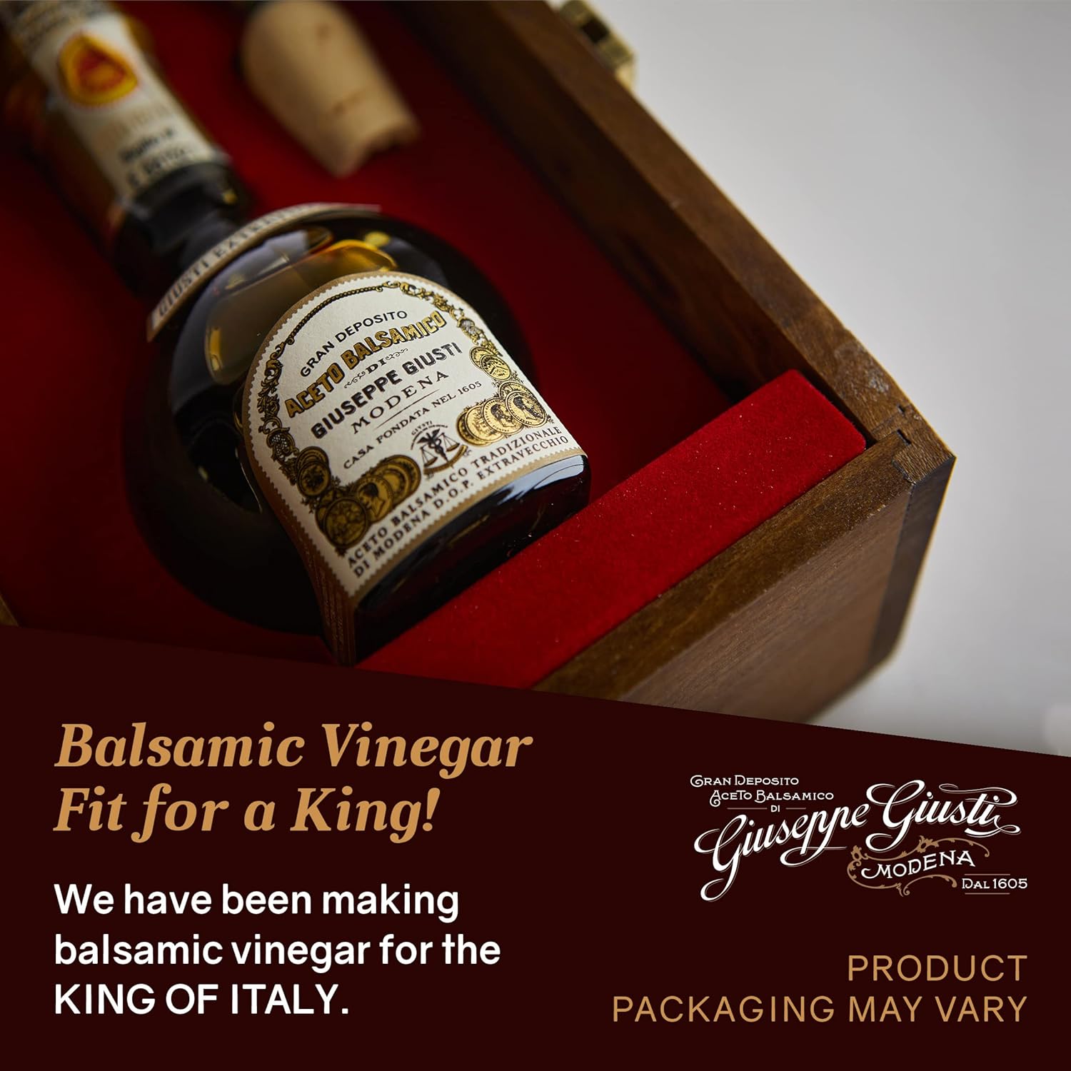 - THE OLDEST PRODUCER OF BALSAMIC VINEGAR IN THE WORLD - Giuseppe Giusti is the oldest vinegar producer in the world since 1605. Our Balsamic Vinegar has the highest possible scoring rating available. This is the older version of Traditional Balsamic Vinegar. Known as Affinato. Aged in 400-year-old barrels for at least a minimum of 12 years.