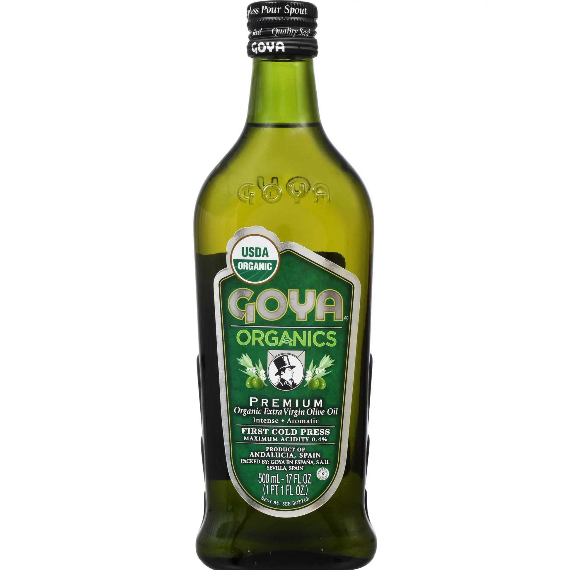 GOYA Organics Premium Organic Extra Virgin Olive Oil 17 Oz. Our gourmet GOYA® Organic Extra Virgin Olive Oil comes in a glas bottle and is a blend of the Picual, Hojiblanca and Picuda varieties of olives from Andalusia, Spain. It has an intense fruity green aroma, with notes of herbs, hints of tomato, apple, green almonds and artichokes. It is harmonious and elegant, giving you an extrasensory experience in every meal. It is best enjoyed raw to savor its natural flavor, perfect when paired with bread, as a dressing on green salads, soft cheese, or to drizzle over your favorite soups and dishes. GOYA® Organic Extra Virgin Olive Oil has been ranked among the top five best organic olive oils worldwide for its premium quality and outstanding flavor.