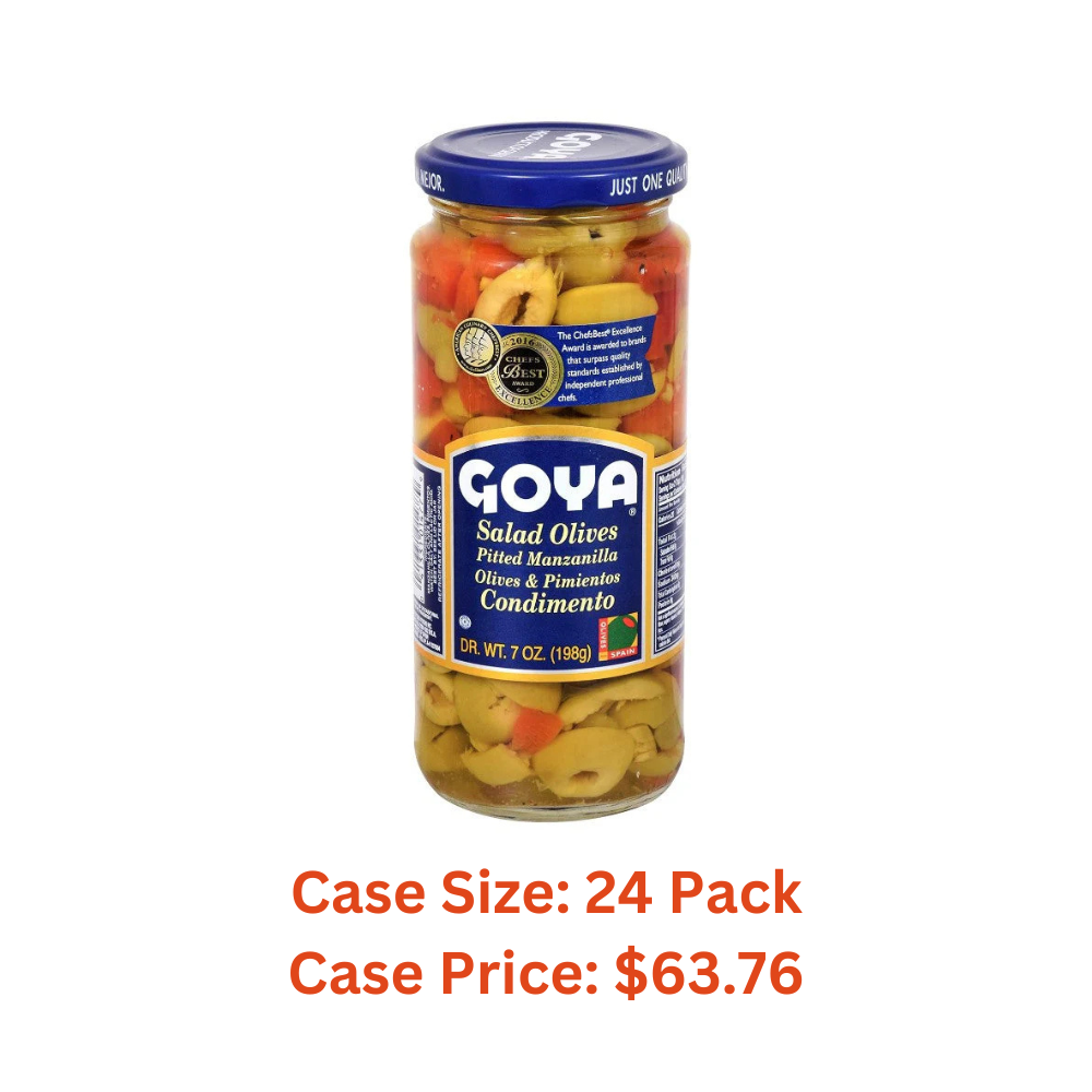 Goya Salad Olives, Pitted Manzanilla and Pimientos 7 Ounce - Case 1