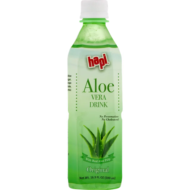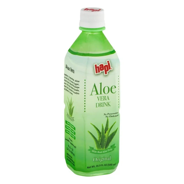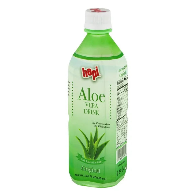 Hapi® Aloe Vera Drink Original. This product is made with real aloe pulp. Contains on preservatives or cholesterol.