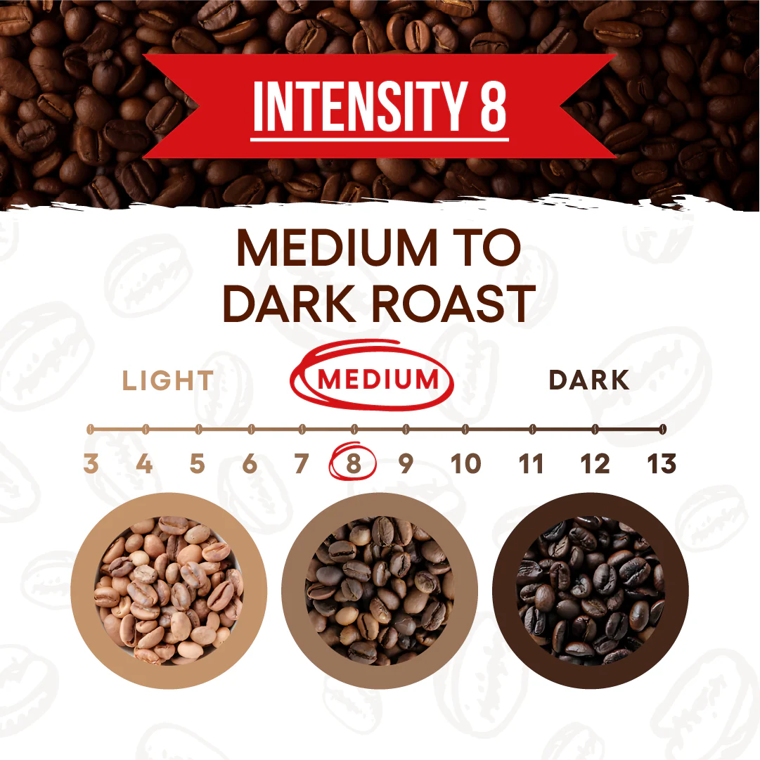 - With a strength of 6 on the intensity scale, this coffee is perfect for those who prefer a more mellow and subtle taste. Whether you enjoy it black or with a splash of milk, the Kimbo Decaf Nespresso Capsules are the perfect choice for anyone who wants to savor the taste of coffee without the caffeine.