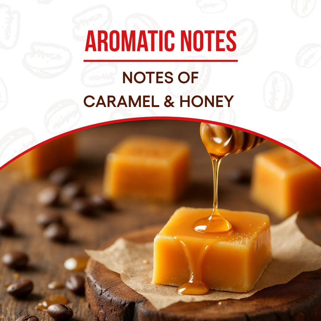 A blend crafted with select Organic & Fairtrade washed Arabica beans, offering a natural sweetness and balanced acidity. Well structured, containing a strong aroma with tones of almond, jasmine flowers, and a sweet fig aroma. Lasting, pleasantly caramelized honey aftertaste.