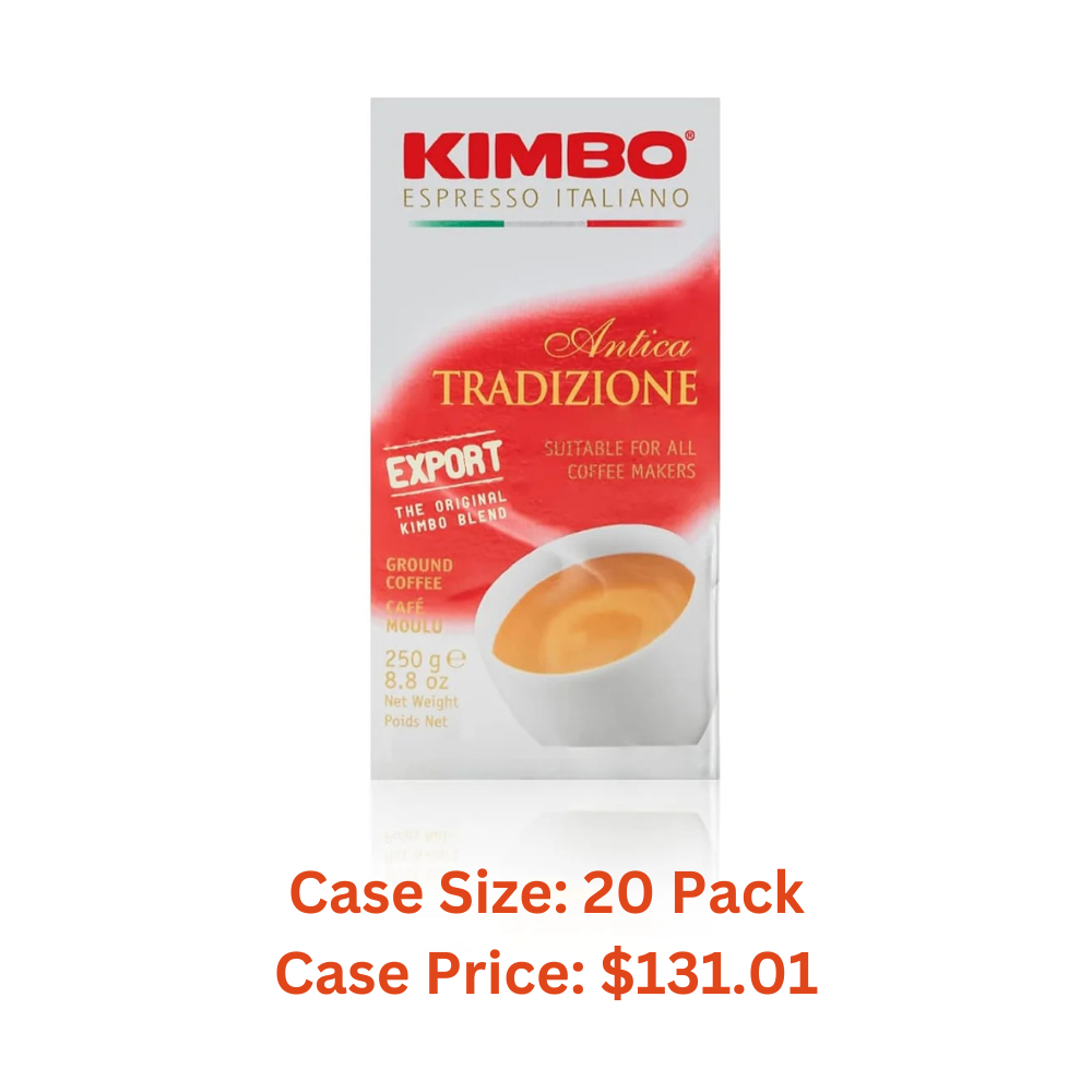 Kimbo Antica Tradizione Ground Coffee - Blended and Roasted in Italy - Extra Dark Roast with a Neapolitan Tradition of Mellow Flavor - 8.8 oz Brick - 1 Case