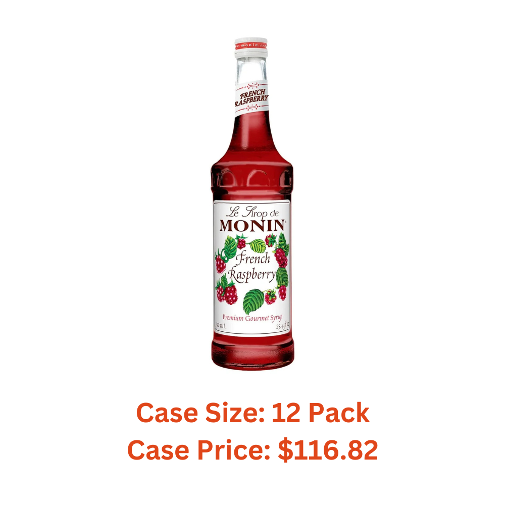 Monin - French Raspberry Syrup, Sweet and Tart Raspberry Flavor, Great for Hot Lattes, Cocoas, Mochas, & Iced Cocktails, Gluten-Free, Vegan, Non-GMO (750 ml) - Case 1