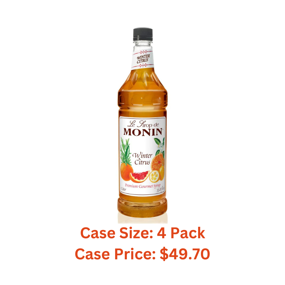 Monin - Winter Citrus Syrup, Blend of Citrus, Honey, & Herbs, Great for Iced Tea, Winter Cocktails, and Sparkling Ciders, Gluten-Free, Vegan, Non-GMO, PET Bottle (1 Liter) - Case 1