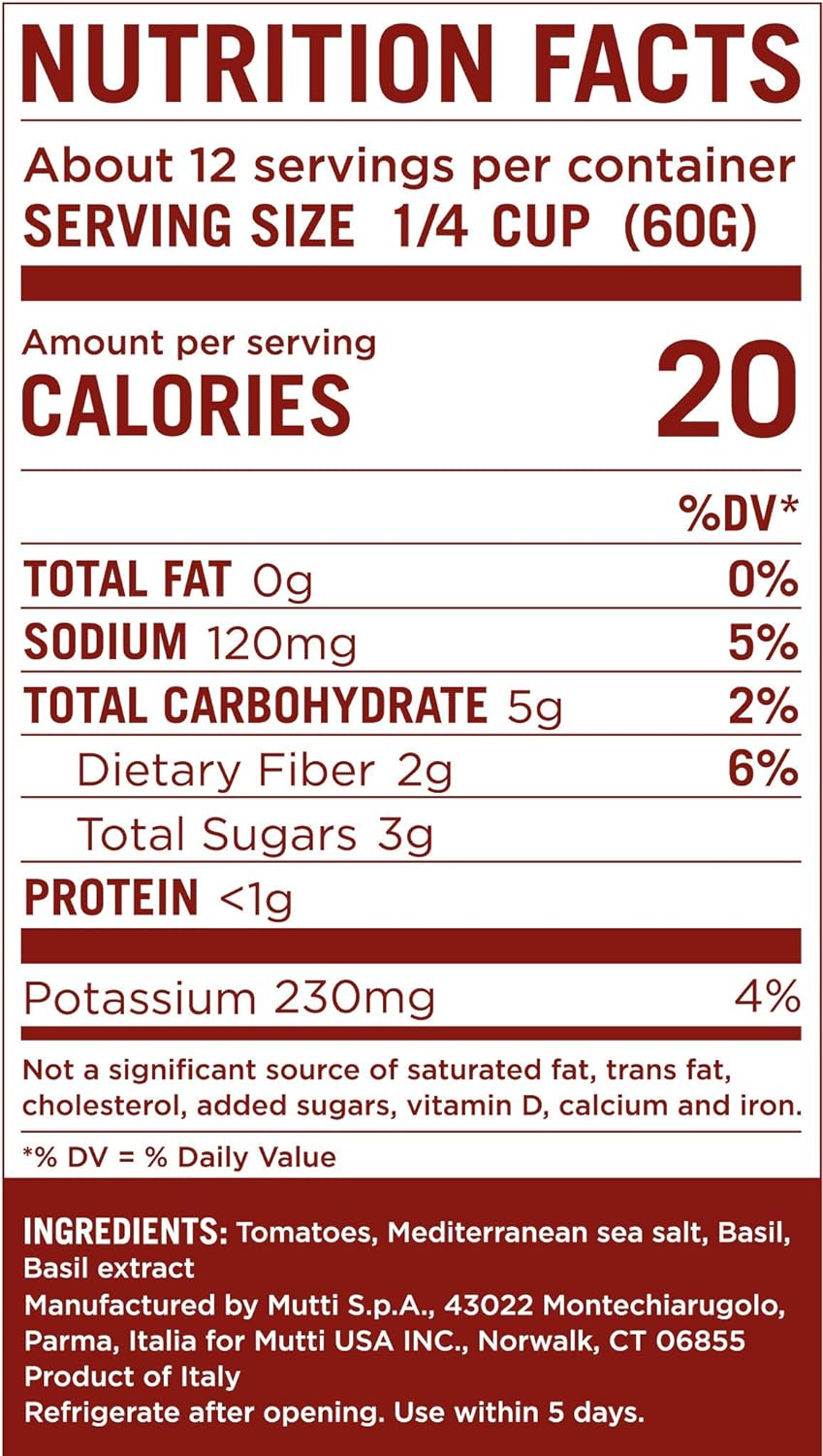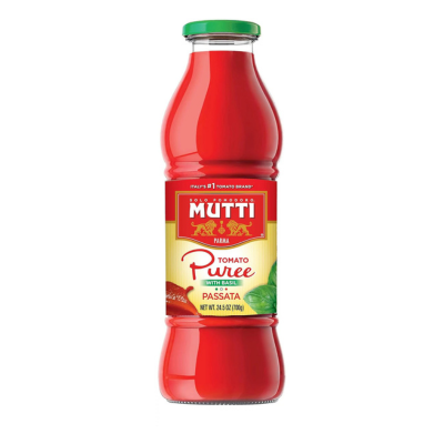 Mutti — 24.5 oz. Tomato Puree with Fresh Basil (Passata con Basilico) from Italy’s #1 Tomato Brand. Sweet and velvety for recipes calling for Pureed Tomatoes. - 1 Case